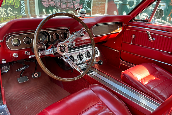 Zeer exclusieve en zeldzame uitvoering.Deze Mustang is een full-option uitvoering: air conditioning, stuurbekrachtiging,binnen verstelbare spiegels etc. Het is een handgeschakelde auto met een V8/4.6L motor, het beruchte Cobra-blok, dit was een van de eerste muscle-cars.